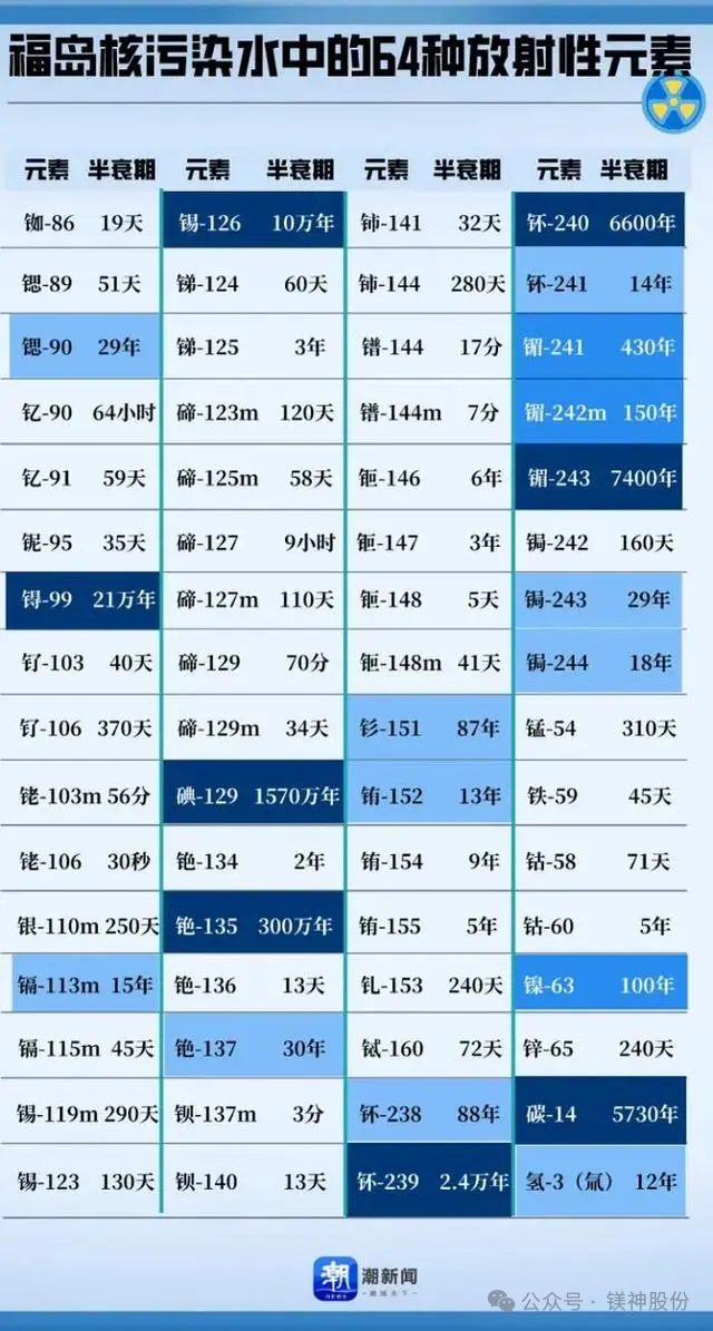 日本排海的核污水中所含放射性物質