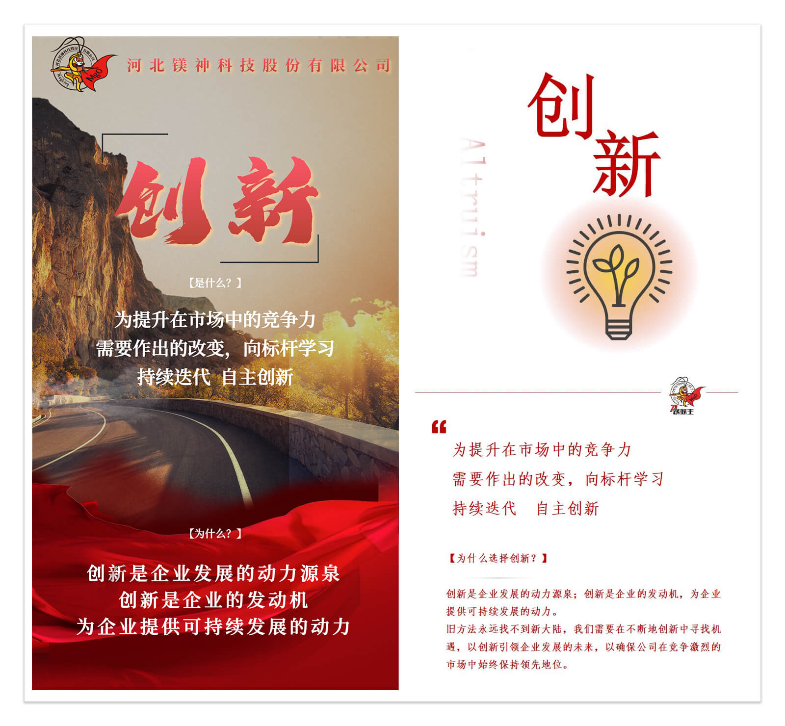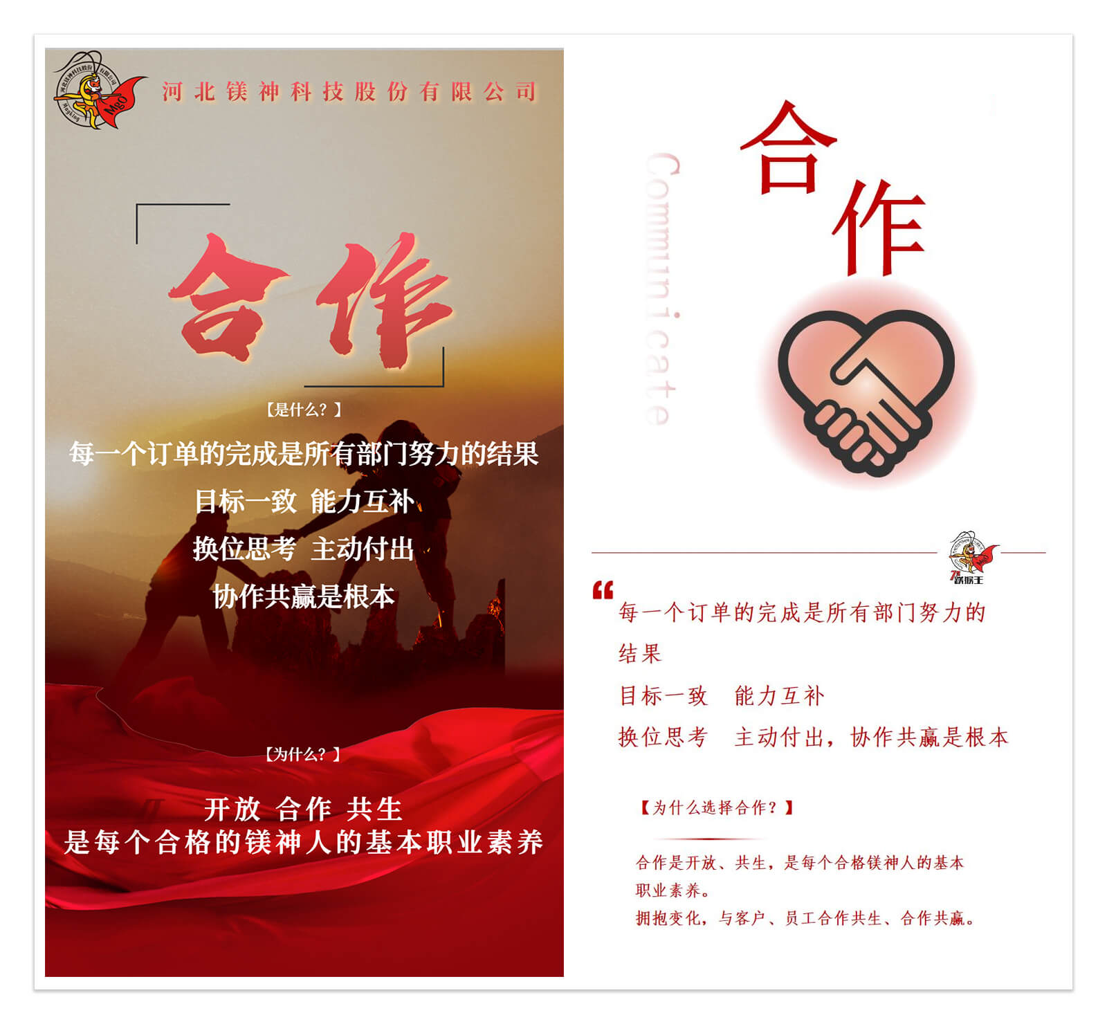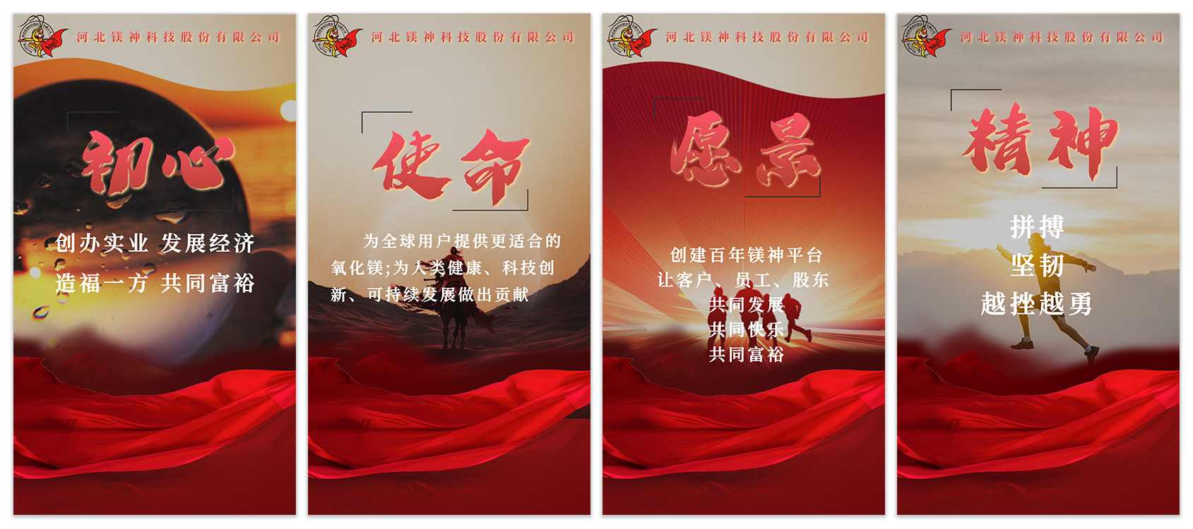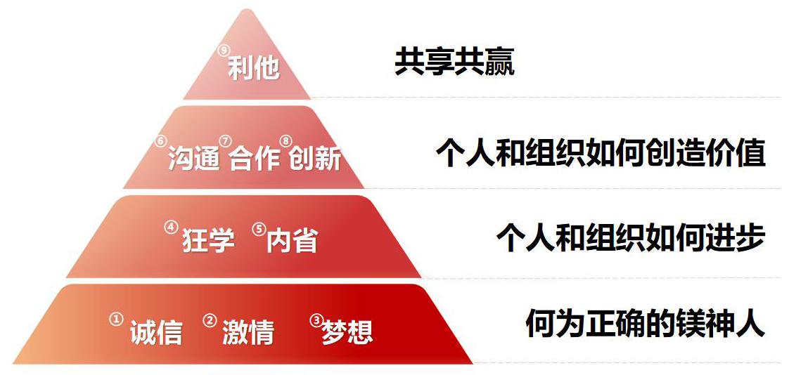 鎂神科技以創(chuàng)辦實業(yè),發(fā)展經(jīng)濟(jì),造福一方,共同富裕為初心;秉承著為全球用戶提供更適合的氧化鎂,為人類健康、科技創(chuàng)新、可持續(xù)發(fā)展作出貢獻(xiàn)的使命;有著創(chuàng)建百年鎂神平臺,讓客戶、員工、股東共同發(fā)展、共同快樂、共同富裕的美好愿景;培育出拼搏、堅韌、越挫越勇的鎂神人。鎂神人用誠信、激情、夢想、狂學(xué)、內(nèi)省、溝通、合作、創(chuàng)新、利他的價值觀向客戶、社會各界朋友詮釋著鎂神的企業(yè)文化!